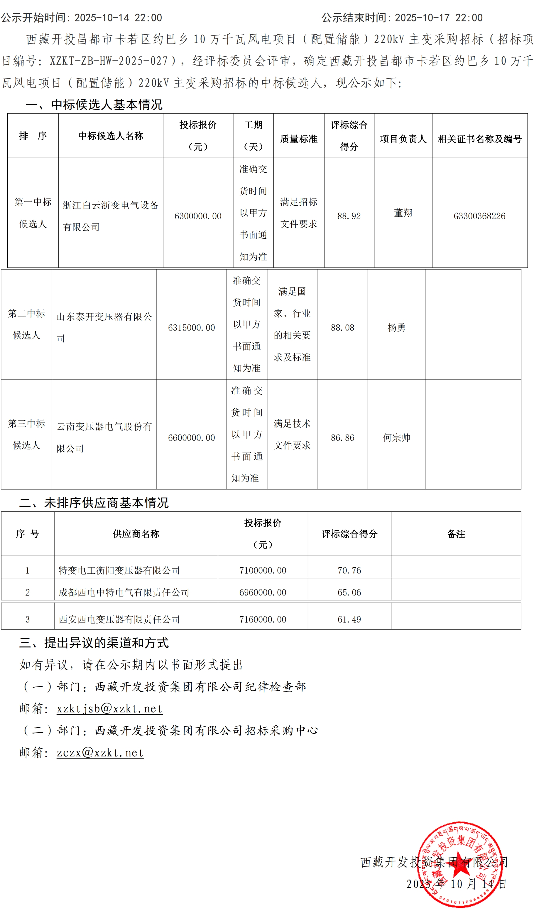 中標(biāo)候選人公示